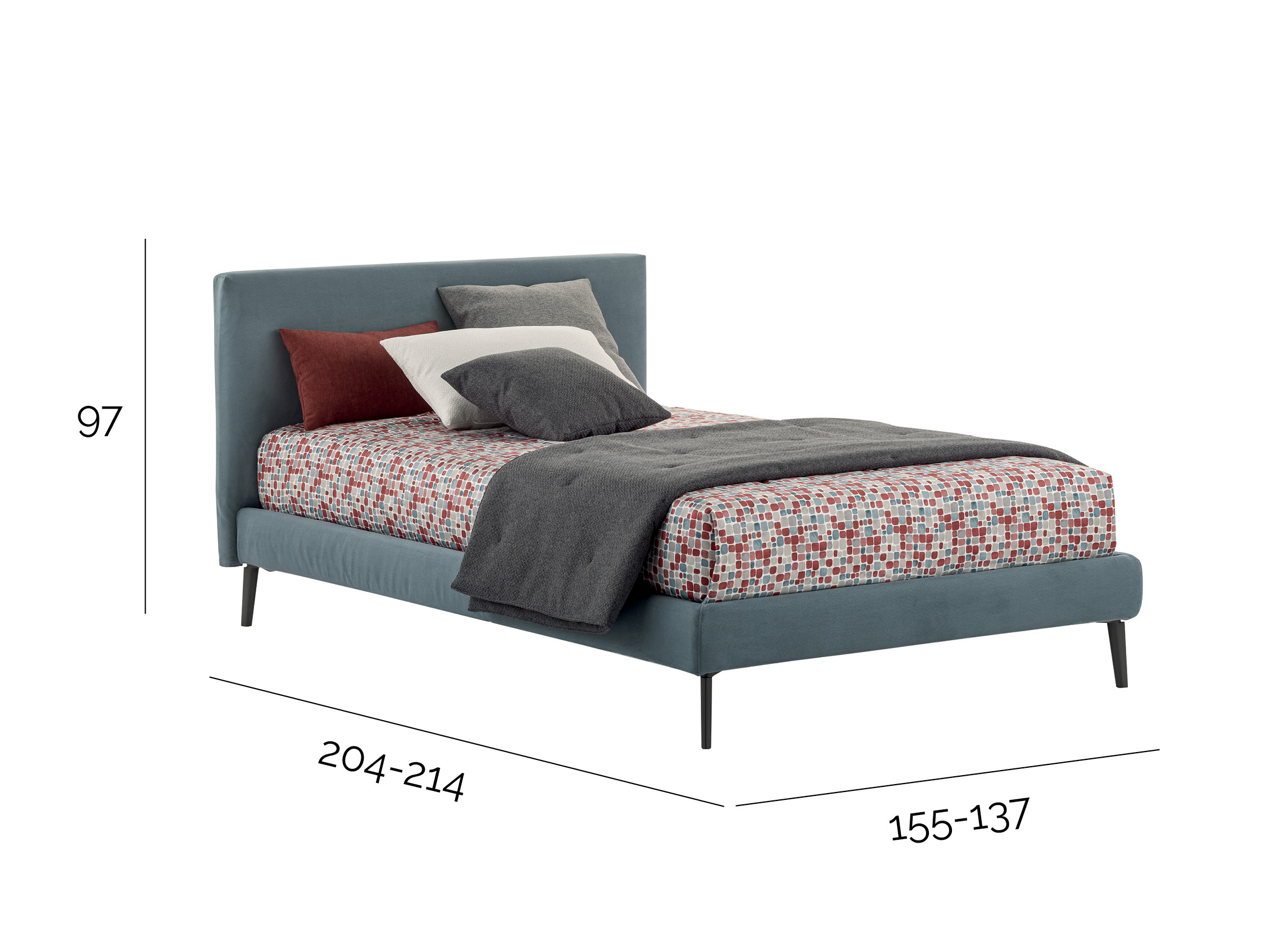 Un letto a una piazza e mezza moderno: il ring basso gli dà un tocco di contemporaneità. Ma Sander è disponibile anche nella versione con ring alto dove è possibile inserire un pratico box contenitore per recuperare spazio prezioso in camera da letto.