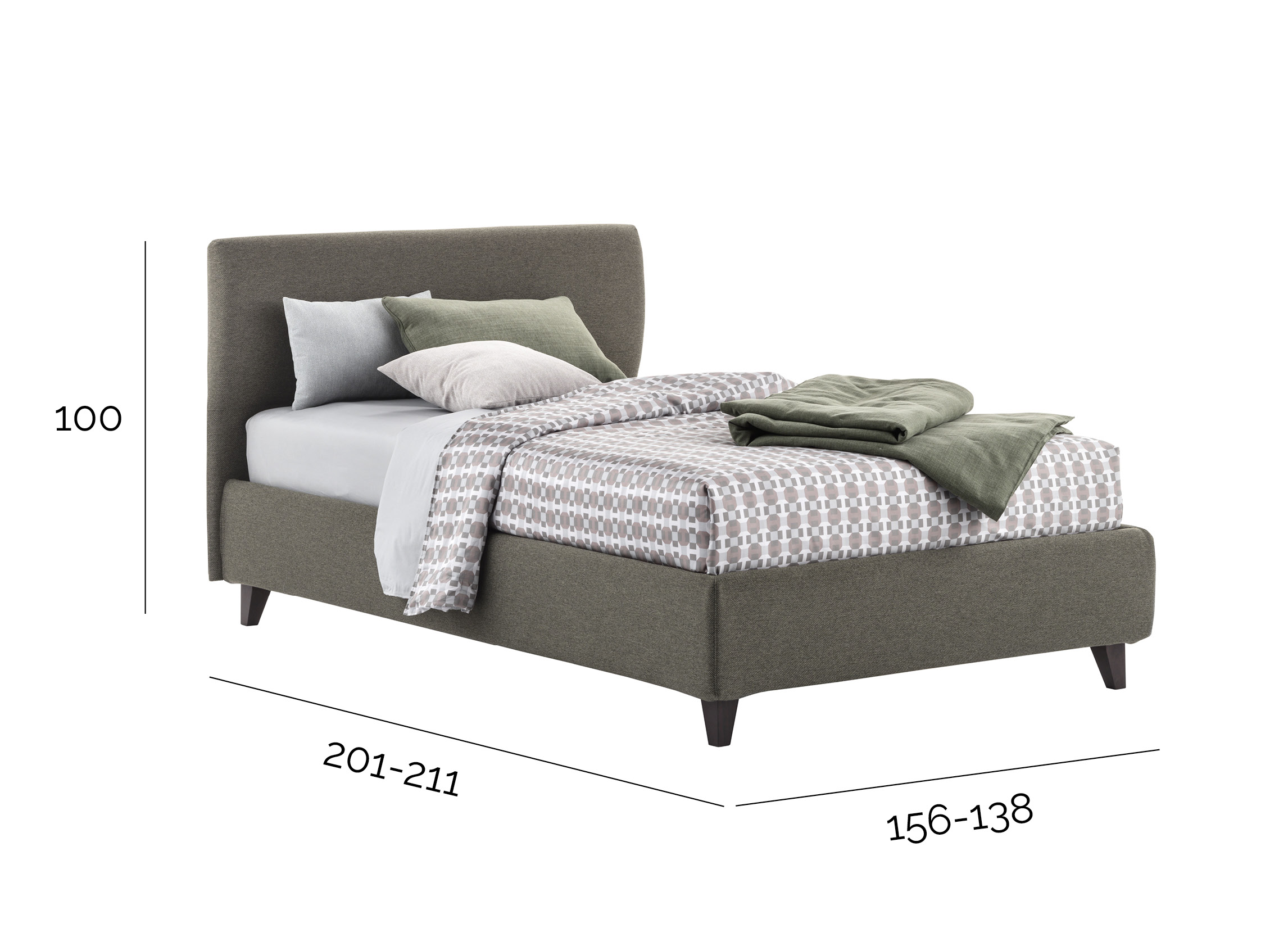 Una soluzione super ergonomica grazie alla testata con due diversi spessori che offre un comodo appoggio a testa e schiena. Il letto una piazza e mezza Benny è disponibile in due misure: 120x190 o 140x190, con o senza box contenitore.