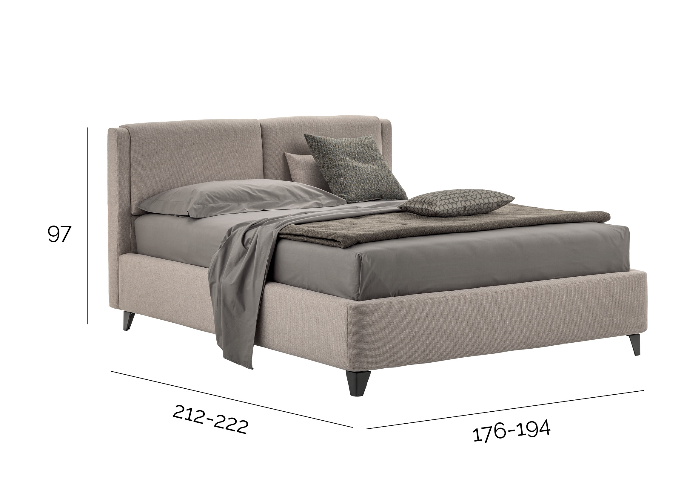 Loft non è solo un letto con testiera reclinabile. Grazie al ring alto permette infatti di salvare spazio prezioso in camera con l’inserimento del box contenitore dove poter riporre biancheria, coperti e accessori.
