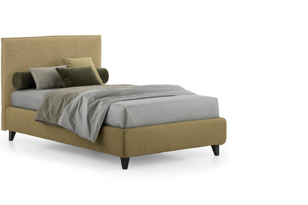 Il benessere è assicurato: Mood è un letto una piazza e mezza con testata alta imbottita per una postura corretta durante la lettura o la visione di un film.